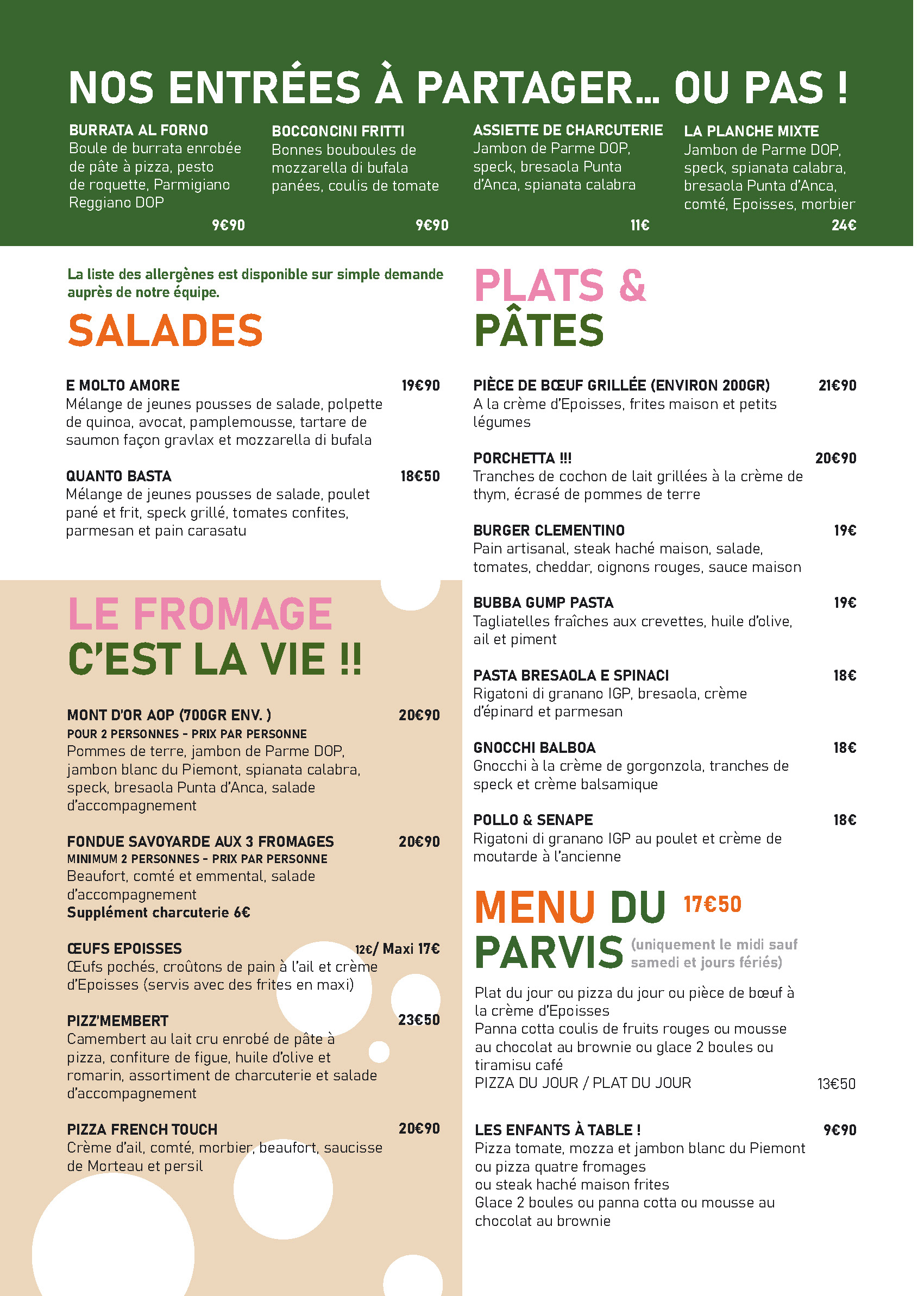 Vous trouverez dans notre carte un grand choix de pizzas, toutes aussi délicieuses les unes que les autres. Nous vous proposons aussi des salades géantes en été, et des spécialités savoyardes en hiver. Tous les gourmets se régaleront !